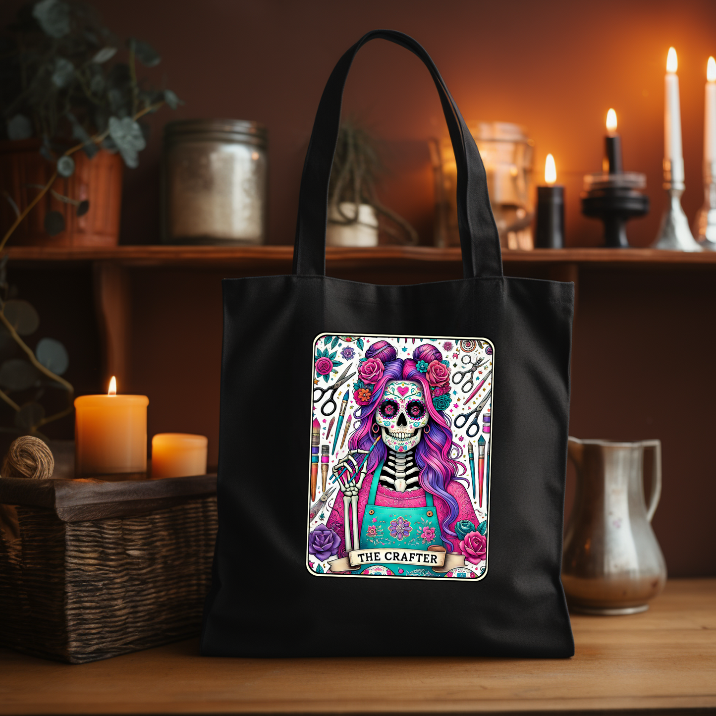 Unleash your inner crafty witch with The Crafter Tarot Tote. This stylish bag is perfect for carrying all your crafting essentials to your next witchy gathering. Featuring a unique tarot design, this tote is both functional and fun for all your mystical pursuits.